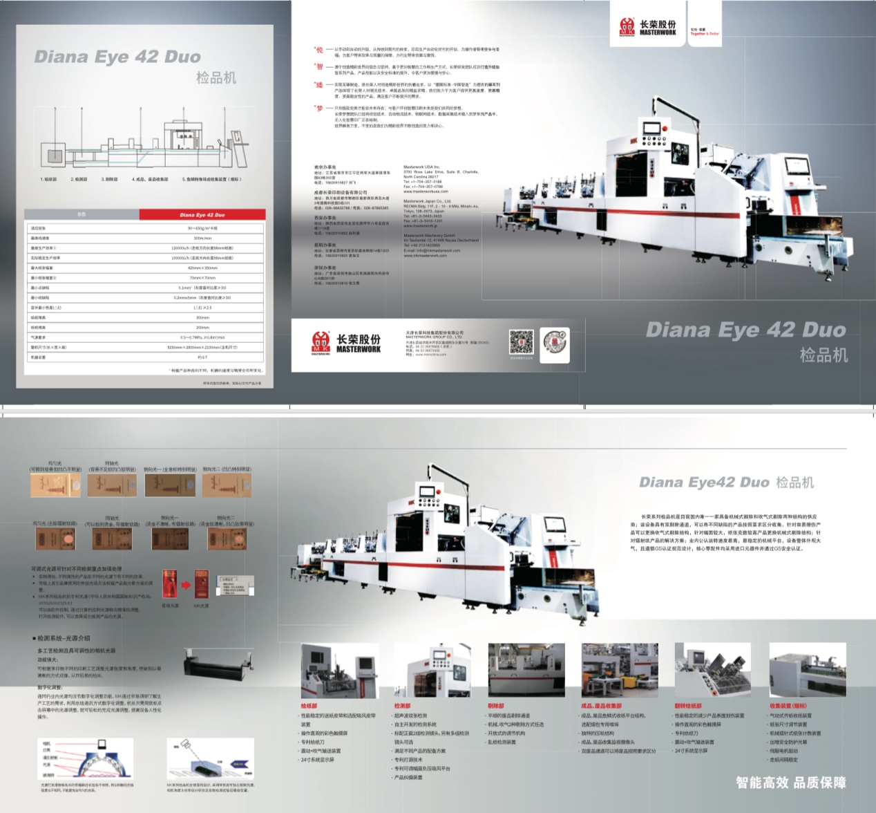 長(zhǎng)榮系列檢品機(jī)是目前國(guó)內(nèi)唯一一家具備機(jī)械式剔除和吹氣式剔除兩種結(jié)構(gòu)的供應(yīng)商;該設(shè)備具有雙剔除通道,可以將不同缺陷的產(chǎn)品按照要求區(qū)分收集。針對(duì)容易擦傷產(chǎn)品可以更換吹氣式剔除結(jié)構(gòu),針對(duì)幅面較大,紙張克數(shù)較高產(chǎn)品更換機(jī)械式剔除結(jié)構(gòu);針對(duì)鐳射紙產(chǎn)品的解決方案;業(yè)內(nèi)公認(rèn)運(yùn)轉(zhuǎn)速度最高,最穩(wěn)定的機(jī)械平臺(tái),設(shè)備整體外觀大氣,且遵循GS認(rèn)證規(guī)范設(shè)計(jì),核心零配件均采用進(jìn)口元器件并通過GS安全認(rèn)證。